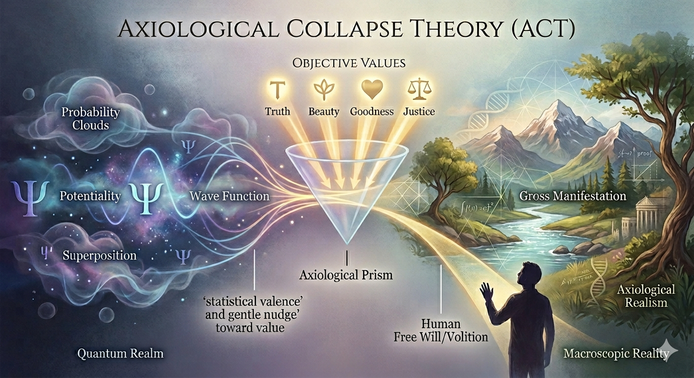 Axiological Collapse Theory, commonly referred to as ACT, represents a unique and innovative metaphysical hypothesis that seeks to reconcile the enigmatic nature of quantum mechanics with a profound belief in a value-driven universe. This theory posits that the fundamental structure of reality is not merely a collection of indifferent physical processes but is instead deeply intertwined with objective axiological values. By situating itself at the intersection of quantum foundations and moral philosophy, ACT provides a framework for understanding how the microscopic world might influence the macroscopic moral and aesthetic landscape. It treats the universe as an unfolding narrative where the most basic units of existence are subtly guided by universal truths. Rather than viewing the cosmos as a cold machine, this theory invites us to consider the possibility that existence itself has a “moral gravity” and is weighted toward meaning. Through this lens, the act of physical manifestation becomes an expression of a deeper, value-oriented reality that shapes everything we perceive.